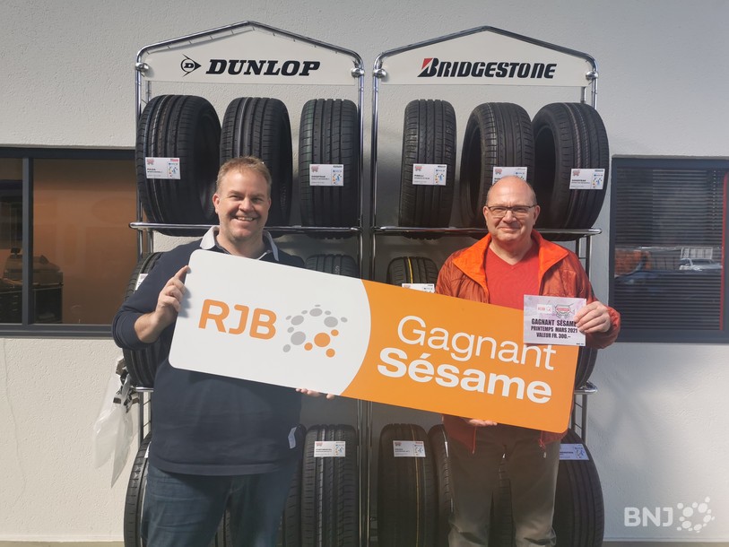 Notre gagnant à gauche, Michaël de Bienne et à sa droite, Alain propriétaire de Pneu Dick à Bienne.